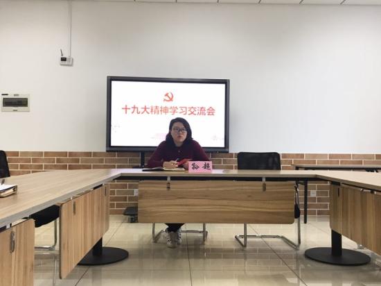 党总支书记孙超同志首先分享了自己对十九大精神的解读。她指出,学生工作的重点是要坚持文化自信,牢抓意识形态,加强思想道德建设。作为高校教育工作者,我们要将十九大精神切切实实与自己的工作、学习、生活相结合,做到爱党爱国敬业,围绕立德树人这一根本任务,始终全心全意为学生的成才成长服务,要牢记教育的本质不光光是“教书”而是“育人”。