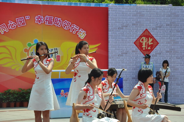 | 2013年5月25日,我校大学生艺术团民乐队和鼓乐队,在教育系艺术教育专业负责人岳远洋老师带队下,参加了嘉定睦邻节“同心园”幸福助邻行动的演出。 民乐队的《爱我中华》,拉开了演出的序幕。观众们合着熟悉的旋律,血液都沸腾了起来,整首歌曲高潮迭起,深入人心,主旋律久久未曾散去。鼓乐队的演出阵容强大,时而夸张声势,时而宛如流水,大鼓小鼓敲打得层次分明。本次演出,每位队员全力以赴,发挥出自己最好水平,展现了我校民乐队和鼓乐队长期的训练成果以及高超水平,赢得了在场每位观众的喝彩。(教育系) | ||