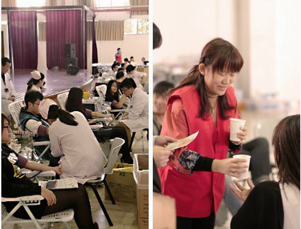 2013年11月4日-5日,学保处在跃华楼体育馆开展2013年度义务献血活动,736名师生用大爱灌溉生命之源,用爱心彰显青春之美。