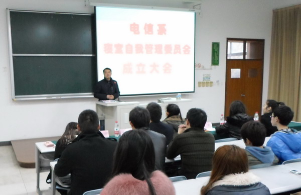 | 2013年3月11日下午16时,电信系、计算机系联合党总支于在日阶101召开了“电信系寝室自管委员会”成立大会。学保处副处长周烨刚、党总支书记刘香连、通信工程支部副书记吴启源、团总支书记金玫、辅导员周欢、沈思、彭刘刚和电信系98名寝室长出席会议。电信系党员工作站检查部副部长詹心言主持。 | ||