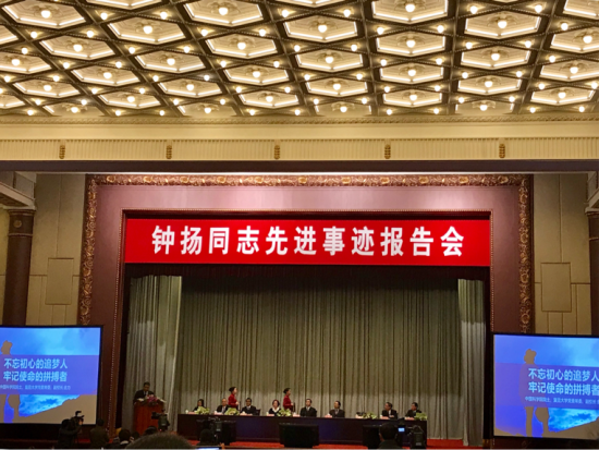 报告会开始,全体参会成员起立奏中华人民共和国国歌,随后共同观看了讲述钟扬同志援藏经历的纪录片《播种未来》。钟扬同志先进事迹报告团成员——中央科学院院士、复旦大学党委常委、副校长金力,复旦大学研究生院副院长楚永全,西藏大学教授拉琼深情追述了钟扬同志一桩桩感人事迹。钟扬同志的妻子、同济大学生命科学与技术学院张晓艳教授、光明日报记者颜维琦先后发言。