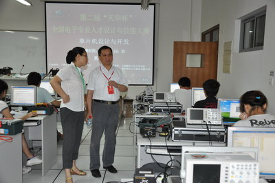 7月3日下午,市教委高教处副处长徐国良亲临我院,视察第二届“天华杯”全国电子专业人才设计与技能大赛上海赛区(单片机设计与开发)的比赛现场,对考试现场进行了工作指导和监督。