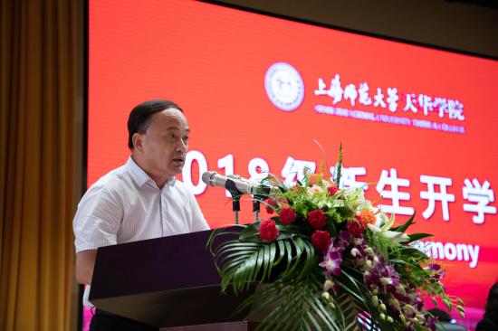 大会最后,上海师范大学副校长蒋明军上台讲话。他简要介绍了上海师范大学和天华学院的基本情况,对天华学院取得的种种成绩高度认可。幽默的将2018级新生叫做“世纪宝宝”,希望2018级新生能志高存远,在奋斗中实现人生价;值勤奋学习,在创新实践中追求卓越;积极向善,在全面发展中积极成长,最终拥有充实、精彩而富有意义的大学,书写属于自己的王者荣耀。