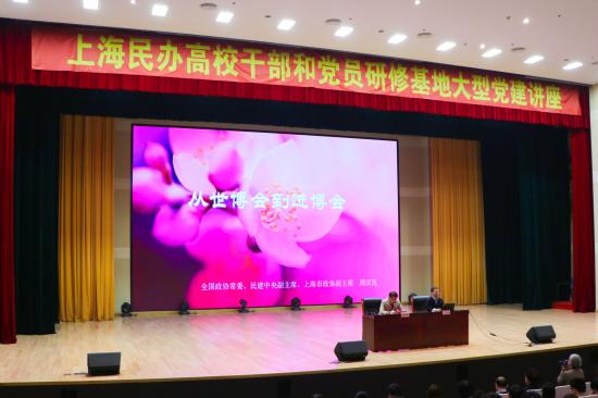 10月26日下午,上海民办高校干部和党员研修基地大型党建讲座《当前的形势与任务——从世博会到进博会》在上海师范大学天华学院晖华楼大礼堂举办。本次讲座特别邀请全国政协常委、民建中央副主席、上海市政协副主席、上海社会主义学院院长、上海公共外交协会副会长周汉民教授主讲从世博会到进博会中国的发展。上海师范大学天华学院党委书记陆建非担任主持。上海市17所民办高校的干部和党员代表,上海民办高校干部和党员研修基地党支部书记研修班全体成员,上海师范大学天华学院党政领导、党委中心组(扩大)学习会议代表和部分教师党员代表、学生党员代表参加讲座。