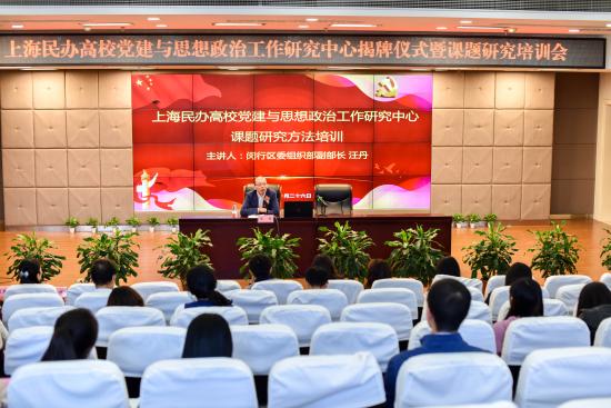 2018年10月26日,上海民办高校党建与思想政治工作研究中心课题研究培训会在我校晖华楼小剧场举行。本次培训会分上下午三场内容。第一场,研究中心特聘专家胡训珉教授为各民办高校课题执笔人作课题相关培训;第二场邀请了同济大学嘉定校区党委副书记覃文忠、复旦大学护理学院党委副书记左超、市党史研究室主编周奕韵,分享研究心得和技巧;第三场邀请了闵行区委组织部副部长汪丹作关于党建研究工作的若干思考与感悟。我校党办主任、宣传部长齐砚奎主持培训会。来自全市10余所民办高校的党建思政课题执笔人、课题管理联络员参加培训。