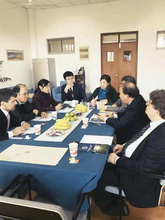 2018年11月8日德国欧福大学德国黑森州经济、能源、交通及地区发展部官员Norbert Noisser、欧福大学经济媒体系学科主任Dr. Stefen Hauptmann、欧福大学研究生专业主任朱开富教授、教育部大学外语教学指导委员会副主任委员朱建华教授一行来访我校,就两校合作深入商洽,并向语言文化学院德语专业学生、管理学院学生代表介绍合作项目情况。副校长龚春蕾、语言文化学院常务副院长陈再阳、国际交流处副处长张云、语言文化学院院长助理兼德语专业主任张文庭热情接待。