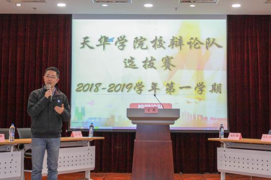 为了进一步整合学校辩论训练资源,更好地发挥辩论训练合力育人的作用,展示天华学子辩论风采。2018年11月15日下午16:20,学保处在图书馆四楼多功能报告厅举行了2018——2019学年第一学期上海师范大学天华学院校辩论队选拔赛。学校党委副书记、学保处处长曹云林,通识学院副院长聂晓晶,学保处副处长,校团委书记包静波,校中英文辩论训练负责老师华芸,各二级学院中英文辩论训练负责老师以及18级各班中英文辩论训练学生负责人出席了此次活动。