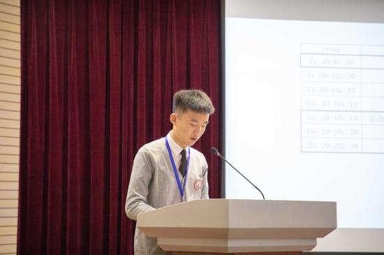 来自语言文化学院新生代表袁翊和教育学院班助理代表邱晟吉分别就入学以来的亲身体验和学生自治管理队伍建设为主题做了精彩发言,向家长们展示了紧张又充实的天华校园学习生活。