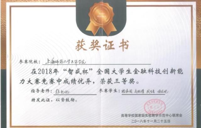 经过校级预选赛和省级选拔赛层层角逐来自全国不同本科院校的52支队伍,本次比赛通过“创新金融基础知识”、“互联网金融运营能力”和“商业银行业务能力”三方面来进行考核。天华学院管理学院学生程淑阅、侯徐悦、高雅倩、周可香获团队三等奖。