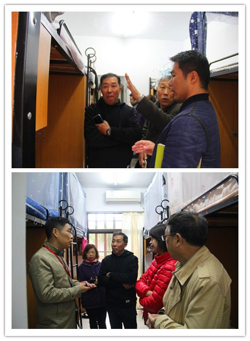 随后一行人员参观了学生宿舍及生活区综合治理办公室,看到辅导员下宿舍有签到,有谈心记录本。看到学生自治有退役复读学生组成的文明纠察队、有寝室长队伍、有楼层长队伍、有生活部队伍,感到十分的敬佩!他们感到天华的学生宿舍网格立体化的管理,层次分明,组织清晰,管理规范,落实得力,高效的保障学生宿舍及校园生活区的安全稳定,深受启发。