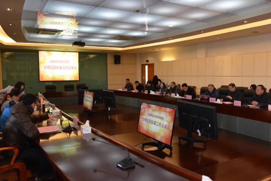 12月12日上午,上海市教委组织专家赴我校检查2017-2018年度首届文明校园创建工作实地检查,专家组访谈校领导,举行教职工、学生座谈会,并对我校校容校貌、平安校园、健康校园进行专项检查。