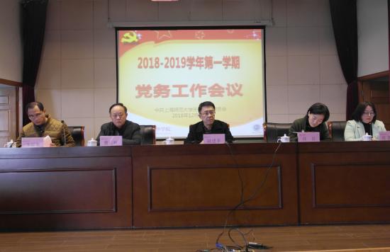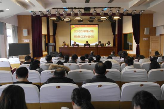 为学习贯彻习近平总书记在全国教育大会上的讲话精神,以及十九大对党的建设提出的新任务、新要求,开创新时代基层党建新局面,我校于2018年12月12日下午13:30,在明华楼五楼报告厅召开2018-2019学年第一学期全体党务干部党务工作会议,党委书记陆建非,副书记曹云林、许岳,党委委员陈新斌、齐砚奎、周凯波以及全体党务工作者参加了本次会议,会议由齐砚奎主持。
