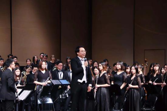 本次音乐会的选曲从幽默而又强节奏感的《墨西哥小号》到怀旧经典的邓丽君歌曲,再到后来的《奉献颂》、《歌唱祖国》,无不彰显着我们都是这改革开放四十周年来的受益者。在此,我祝愿我们的祖国新年更加繁荣昌盛!愿我们天华交响管乐团越来越好,勇往直前,将更好的作品送向国际的舞台!”