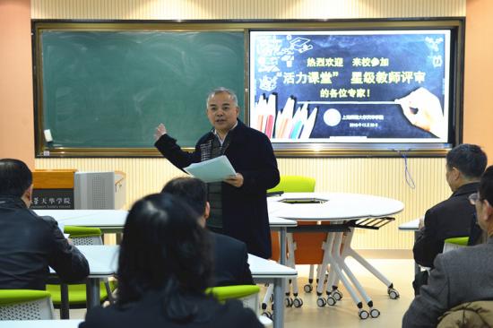 2018年12月20日,教务处委托上海市教育评估院,组织华东师范大学、上海师范大学等高校的16名校外专家,分成4个组别,在日华楼四间智慧教室开展了为期一天的评审工作,共计26名教师参加考核。副校长龚春蕾、陈新斌、吴国兴,校长助理兼教育学院院长滕薇分别作为各组校级观察员,全程坐镇评审现场,介绍教改情况并解答专家评审的疑问。
