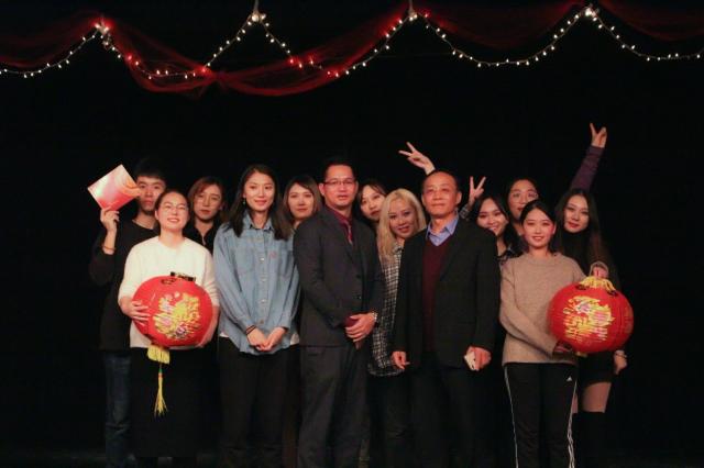 结束后,天华学院参与春晚的同学与西俄勒冈大学副校长杨能强合影留念。这次春晚给我校同学们留下深刻回忆,在合作中建立默契,在这个热情洋溢的国度,共迎新春,欢度佳节!