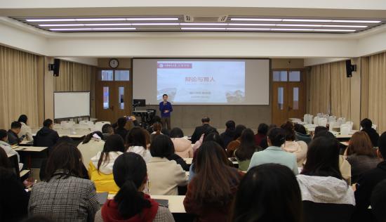 (图片二:通识学院副院长聂晓晶为在场辅导员进行培训)