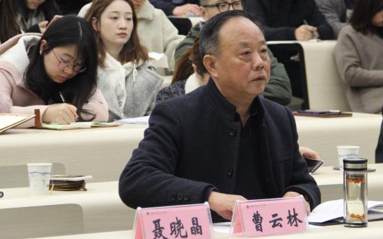 (图片一:校党委副书记兼学保处处长曹云林认真聆听培训)