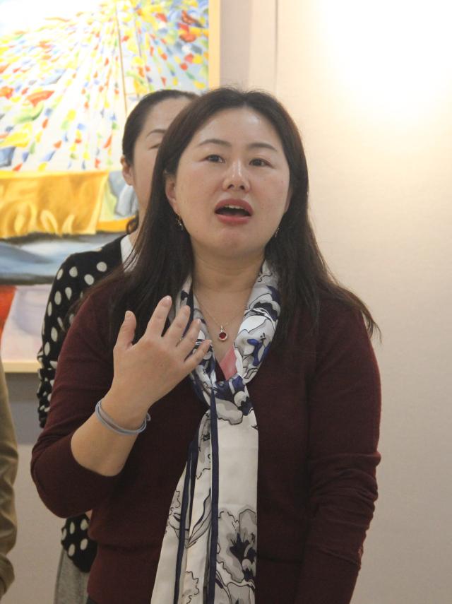 本次开幕式共设四个环节。第一个环节由教育学院院长滕薇老师致词。首先,她肯定了老师和同学们的辛勤付出,感谢同学们在离校之际,能为学校增添一抹光彩,创作出本年度第一批高质量的作品。本次画展取名为“回望”也代表着毕业生们用自己的作品展现出在天华学院四年的刻苦学习成果。滕薇院长也特别感谢美术教研组的老师们,正是因为有专业教师的悉心指导,各位毕业生们才会有如此优秀的毕业作品。接着,滕老师对各位毕业生们提出希望:“希望大家能像海绵一样,吸纳生活中的元素和哲理,创作出更好的作品,期待有一天能收到来自你们的邀请,欣赏属于你们自己的画展!”