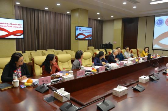 2019年4月18日,美国伊利诺伊州立大学分管教学的副校长兼教务长Dr. Murphy,副教务长Dr. Yazedjian及国际生录取中心执行主任Yimin Wang来访我校,并签订两校金融数学专业合作协议。校长叶才福、副校长龚春蕾、教育科技孵化中心兼幼教支持服务中心主任胡国志、国际交流处处长胡珍、科研处处长兼管理学院副院长翁跃明、艺术学院副院长朱花、语言文化学院副院长孙超热情接待。会议由副校长龚春蕾主持。