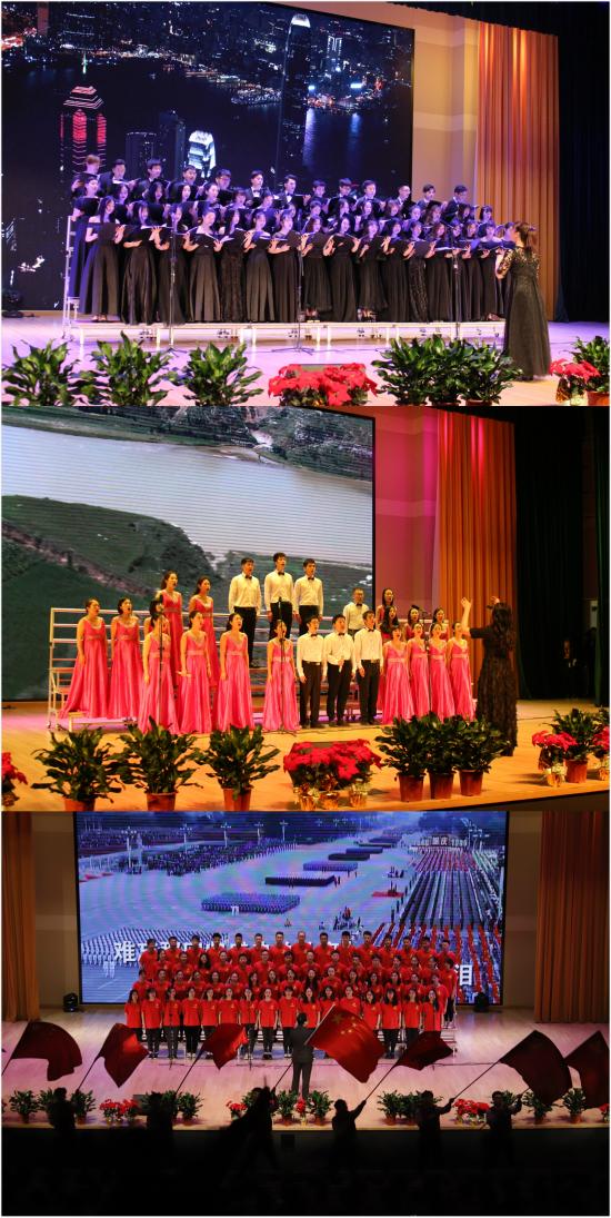 本次比赛我校共有10支队伍参加,我校大学生艺术团学生合唱团带来的《东方之珠》的精彩开场,7支参赛队伍的激烈比拼,场下各学院啦啦队口号洪亮,为学院参赛队伍加油打call,教职工演唱团精彩演绎了《我的祖国 》让比赛渐入佳境,辅导员演唱曲目《在灿烂阳光下》,将此次活动推向了高潮。最终,管理学院凭借一曲《绒花》勇夺冠军,语言文化学院《迎风飘扬的旗》获得亚军,教育学院《黄水谣》获得季军,艺术设计学院《鼓浪屿之波》、进修学院《乡愁》、工学院《站起来》、健康学院《天耀中华》获得优胜奖。