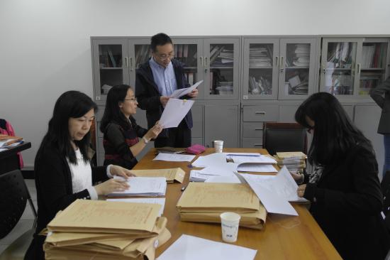 抽查当日上午,各抽查小组分赴各二级学院,结合教学秘书提供的检查材料,检查听课情况、试卷命题质量及三年内重复率、教学大纲编写情况及国际化课程归档等情况,也对各学院关于上学期期末试卷的整改情况进行追踪检查。教务处常务副处长徐振亲临现场检查和指导工作。