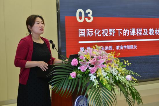 (教育学院院长滕薇汇报国际视野下的的课程及教材建设工作)