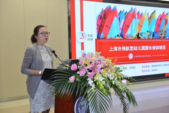随后,副校长龚春蕾汇报了领航幼儿园园长培训项目筹备工作。龚校长表示,希望通过三个阶段的研修培训,让园长们达到提高站位、更新理念、增强实操的目的,对标《幼儿园园长专业标准》,对标《中共中央国务院关于学前教育深化改革规范发展的若干意见》以及教育部和上海市关于实施第三期学前教育行动计划的意见,对标《上海市“十三五”中小学、幼儿园、中等职业学校教学培训工作实施意见》,强化园长们的专业意识、实践意识、研修意识,最终实现理论武装、国际视野、管理能力、科研素养的全面进阶。