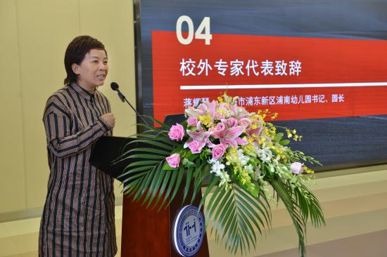 最后,上海市浦东新区浦南幼儿园书记、园长蒋耀琴发表致辞。蒋园长表示,我们天华的毕业生专业技术扎实,专业思想稳定,在教育教学中很有创新性,希望天华未来有更多优秀的学生输入到浦东的幼儿园,同时也希望未来能有更多的机会到天华来学习。