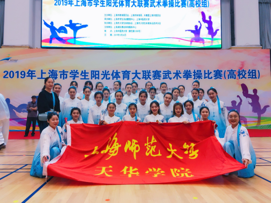 2019年5月26日,上海市学生阳光体育大联赛武术拳操比赛(高校组)在上海中医药大学举行,我校功夫扇队在全校领导师生的关心和支持之下,由答英娟老师带队参加本次比赛,并以8.95的高分荣获总分第二名,摘得一等奖!