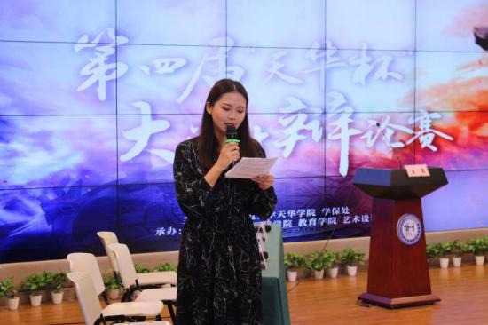 为培养学生创新思维能力,发挥辩论训练骨干的示范作用,推动全校辩论训练整体发展,唱响学校“第二活力课堂”育人的主旋律。2019年5月21日、24日,学保处分别在晖华楼小剧场和大礼堂隆重举行了第四届“天华杯”——庆祝祖国七十华诞,辩出天华学子风采辩论预决赛。副校长、工学院院长吴国兴,校监史文,校长助理、教育学院院长滕薇 ,学校党委副书记、学保处处长曹云林,语言文化学院常务副院长陈再阳,校党委组织部部长周凯波;校党委宣传部部长齐砚奎;通识学院副院长聂晓晶,学保处助理以上干部,全体正副辅导员以及各班班长、辩论训练小组组长、主席参加了此次活动。本次大赛的评委由各二级学院党总支书记和学校辩论训练指导教师华芸担任。辅导员陆湲湲老师担任赛场主持。此次活动由教育学院和艺术设计学院联合承办。