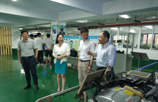 (图1:上海市就业促进中心对我校新能源汽车技术服务能力训练营进行实地调研)