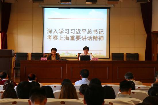 在全国上下深入学习习近平总书记重要讲话精神,全面落实中央、市委和市教委要求,部署启动“不忘初心、牢记使命”主题教育之际,2019年6月5日下午2:00,我校党委中心组(扩大)学习报告会在我校明华楼5楼报告厅顺利举行。本次报告会邀请了市委党校财政与国家治理研究中心主任李猛教授来我校作题为《深入学习习近平总书记,考察上海重要讲话精神》的讲座。学校校务委员会全体委员、中层干部、助理、专业主任、全体党务干部、辅导员、以及师生党员代表参加此次会议。报告会由党委书记陆建非主持。