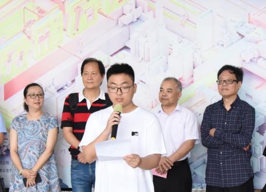 接着,本届数字媒体艺术专业的毕业生代表杨启晨进行了发言。他对学校四年的栽培和老师们的谆谆教诲由衷表示感谢。他认为此次精品展是毕业生们四年学习成果交流的平台,同学们的作品包罗万象,展现出了各自独到的见解与思想,都是值得借鉴与学习的,也让更多的同学们感受到艺术设计的魅力,为以后的设计提供灵感和方向。