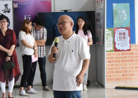 随后,开幕式特别邀请了环境设计专业的指导教授周锐老师发言。今年,是周老师在天华的第10年,他见证了艺术设计学院从初创期发展至如今成熟期的每一步。周老师表示,学院从教学体制、教学设备、师资队伍建设上都已达到较高水平。学生的毕业设计课题上也由陈旧向新颖转变,作品也越来越出色,祝愿学院前景可期,学生们前途无量。