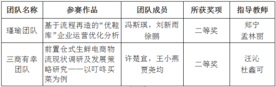 2019年5月31日—6月2日,我校管理学院队在汪沁老师的带领下赴青岛参加2019届全国高校商业精英挑战赛物流实践竞赛全国总决赛。此次竞赛,我校16秋物流管理专业6名学生组成2支代表队参加比赛。经过与来自全国高校的60多支团队的激烈角逐,荣获两个全国二等奖。获奖名单如下: