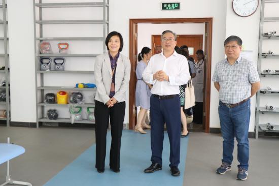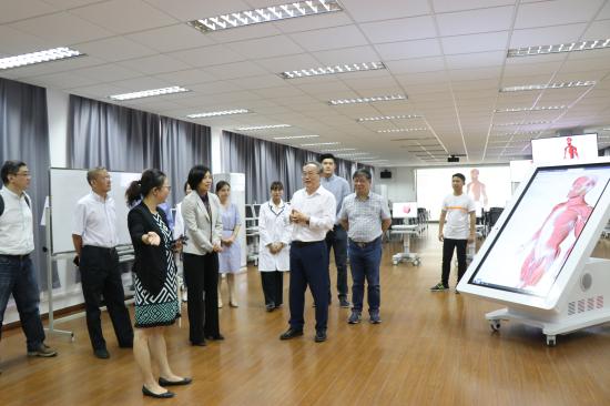 在健康学院,毛丽娟一行详细了解了我校中美合作康复治疗本科双学士项目,并考察了VR解剖体验区、3D解剖台、综合手法实训室、作业治疗实训室、运动疗法实训室等专业教学实训室。