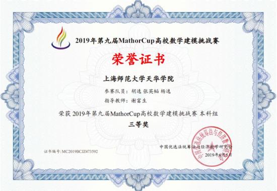 (获奖证书(胡逸、张英韬、杨逸))