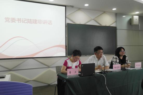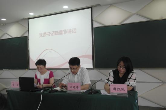 党委书记陆建非在会上作了重要讲话,他指出教代会是学校实行民主管理的基本组织形式,是教职工参政议政、当家作主的重要平台,对本次教代会的成功召开给予了高度评价。他提出学校要以现代大学管理制度为抓手,进一步推进校务公开,完善监督机制,促进学校和谐发展。同时,他希望新上任的领导干部们认真学习市委书记李强关于“充满激情、富于创造、勇于担当”的讲话,更好地履行自己的责任与义务,为学校的发展贡献力量。