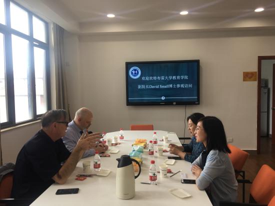 2019年6月25日,新西兰坎特伯雷大学教育、健康与人类发展学院院长Dr.David Small,学院项目主管Simon Arnold来访我校,副校长龚春蕾、教育学院院长滕薇、国际交流处处长胡珍、 教育学院院长助理张丽热情接待。