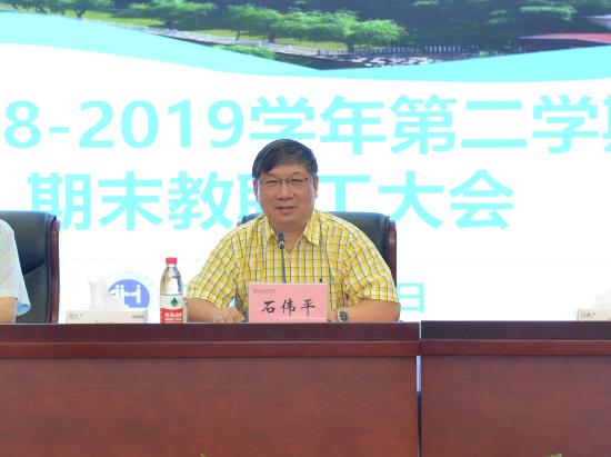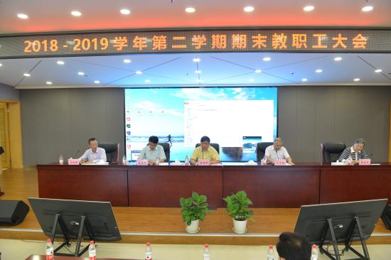 2019年7月5日上午,我校2018-2019学年第二学期期末教职工大会在晖华楼报告厅举行。执行董事长石伟平、党委书记陆建非、校长叶才福、总校监郭伟奇、监事长韩晓玉出席会议。会议由执行董事长石伟平主持。