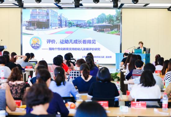 7月8日,上海市静安区温剑青园长为100位培训学员做主题报告《评价,让幼儿成长看得见——指向个性化教育支持的幼儿发展评价研究》。温剑青园长主持的教学研究获得了2018年国家级教学成果一等奖,她在报告中以安庆幼儿园13年的研究历程和轨迹呈现了幼儿评价从观念转变到科学实施的收获和成长。