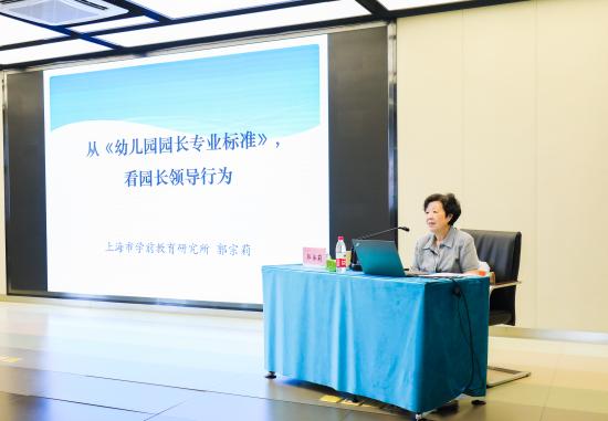 7月8日上午,上海市学前教育研究所常务副所长郭宗莉,于图书馆四楼多功能报告厅为上海市幼儿园园长研修班全体学员作题为“从《幼儿园园长专业标准》看园长领导行为”的报告。郭所长从对园长领导力的认识、明确园长领导的专业定位,以及学习内化《专业标准》,提升园长领导行为三个方面,兼顾幼儿园办学理念和办园实践,对标准进行了详细解读。