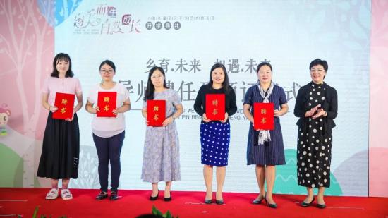 活动中,嘉定区教育局副局长赵丽鸾,华亭镇副镇长冯健华和我校校长助理、学前教育学院院长滕薇共同为幼儿园文化标识发布揭幕。我校滕薇、扶跃辉、杨莹、岳远洋、申晨婧五位导师被聘为“乡育·未来 ”计划导师。