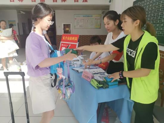 (学生安全员向新生发放《入学安全手册》 )