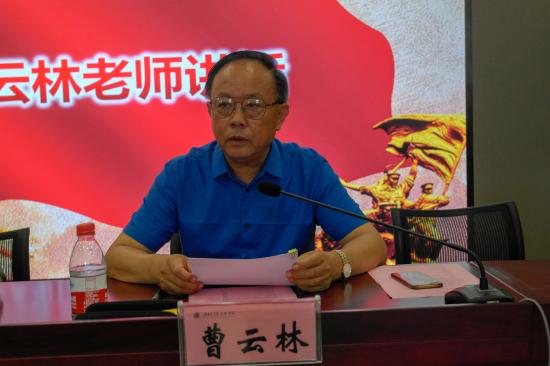 校党委副书记、学保处处长、武装部部长曹云林老师代表学校向今年应征入伍的同学表示热烈祝贺,向光荣退伍载誉归来的同学们表示热烈欢迎。他从“带着希望、带着责任、带着梦想”三个方面对新兵提出具体要求,愿所有入伍新兵能够用自己的实际行动为天华添光彩,报效祖国。对全体退役同学提出三点要求:一是适应好三个转变、二是达到三个不忘、三是做到三个强化,希望他们在新的工作岗位发挥更好的光和热。