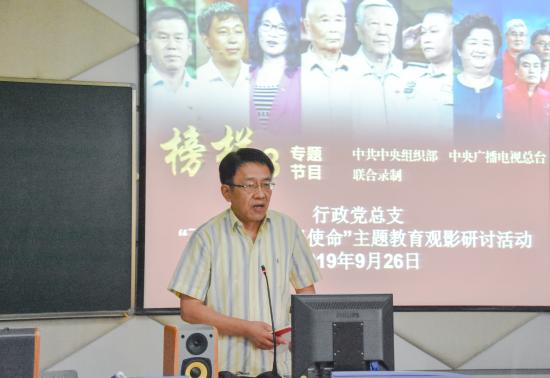 9月26日,行政党总支在明华楼五楼演播中心开展“不忘初心、牢记使命”主题教育活动——观看红色教育片《榜样3》。党委书记陆建非参加活动。