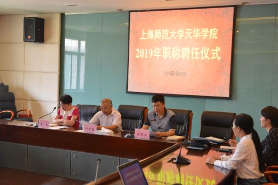 首先副校长、人事处处长吴国兴宣读了学校聘任教师的决定。经本人申请,上海市新建本科院校与高职高专院校专业技术职务评议联合工作委员会评议,学校思想品德考察组和教学能力考察组进行评议等程序,聘任商学院程葆青同志为教授职务;聘任工学院胡声丹,马克思主义学院周凯波,商学院蒋亚萍、郭家秀,初等教育学院卜迅、邹冰洁、范钦佩,语言文化学院张丽珺,艺术设计学院黄立程、刘恋、韩丽莹、包臻隽,人事处李艳艳13名同志为副教授职务;聘任党委办公室屠潇,商学院董春珑,学前教育学院张萌,通识学院李卓琳、陈强,马克思主义学院王琼平,学保处金玫、喻林萍、郭梦蝶、牛风学,艺术设计学院秦屹、黄喆、殷心悦、汪宗哲,语言文化学院薄萌萌、马慧丽、孙雪17名同志为讲师职务。聘期自2019年7月开始,以本人在学校工作时限为准。