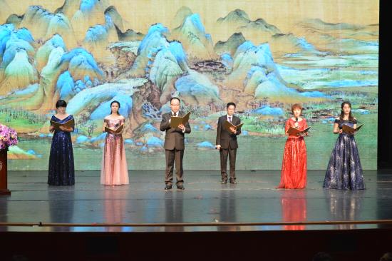 颁奖典礼在我校教师聂晓晶、全中元、梁洁、孙娜、陈翠翠、王婉玉充满爱国激情的诗朗诵《祖国对我说》中正式拉开帷幕!天华好声音响彻颁奖典礼现场,将现场氛围推到高潮!