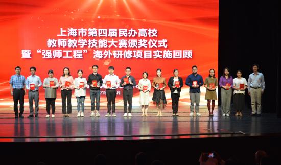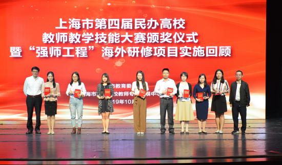 金秋送爽,丹桂飘香,在伟大祖国70华诞之际,10月14日下午15时,“第四届上海市民办高校教师教学技能大赛暨‘强师工程’海外研修项目实施回顾”颁奖典礼在上海师范大学隆重举行。我校校长叶才福,副校长龚春蕾、吴国兴,人事处和教务处负责人,所获奖教师,参加海外研修项目教师以及学校新入职教师参加了此次颁奖典礼。