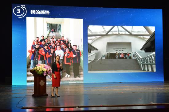 接下来,有幸被选为教师代表的我校黄蔚老师做了交流发言。作为“强师工程”直接受益人与既得利益者,黄蔚老师以“仰望星空,砥砺前行--我与‘强师工程’的七年缘”为题,与大家进行了感动分享。发言中黄蔚老师深情回顾了七年来“强师工程”为她的人生提供的三把钥匙:参加第一届上海市民办高校教师教学技能大赛并荣获特等奖、远赴英国赫特福德大学进行为期四个月的访学、赴新加坡南洋理工大学国立教育学院攻读教育硕士学位。最后,黄蔚老师感谢“强师工程”提供的广阔展示平台与攀登通道,感谢天华学院的培养和承托。如果民办教育是那一片璀璨的星空,每一位仰望星空的教育工作者都有可能升华为照亮夜空的一颗明星。黄蔚老师决心将继续努力攀登,海外读博,争取早日回国报效!